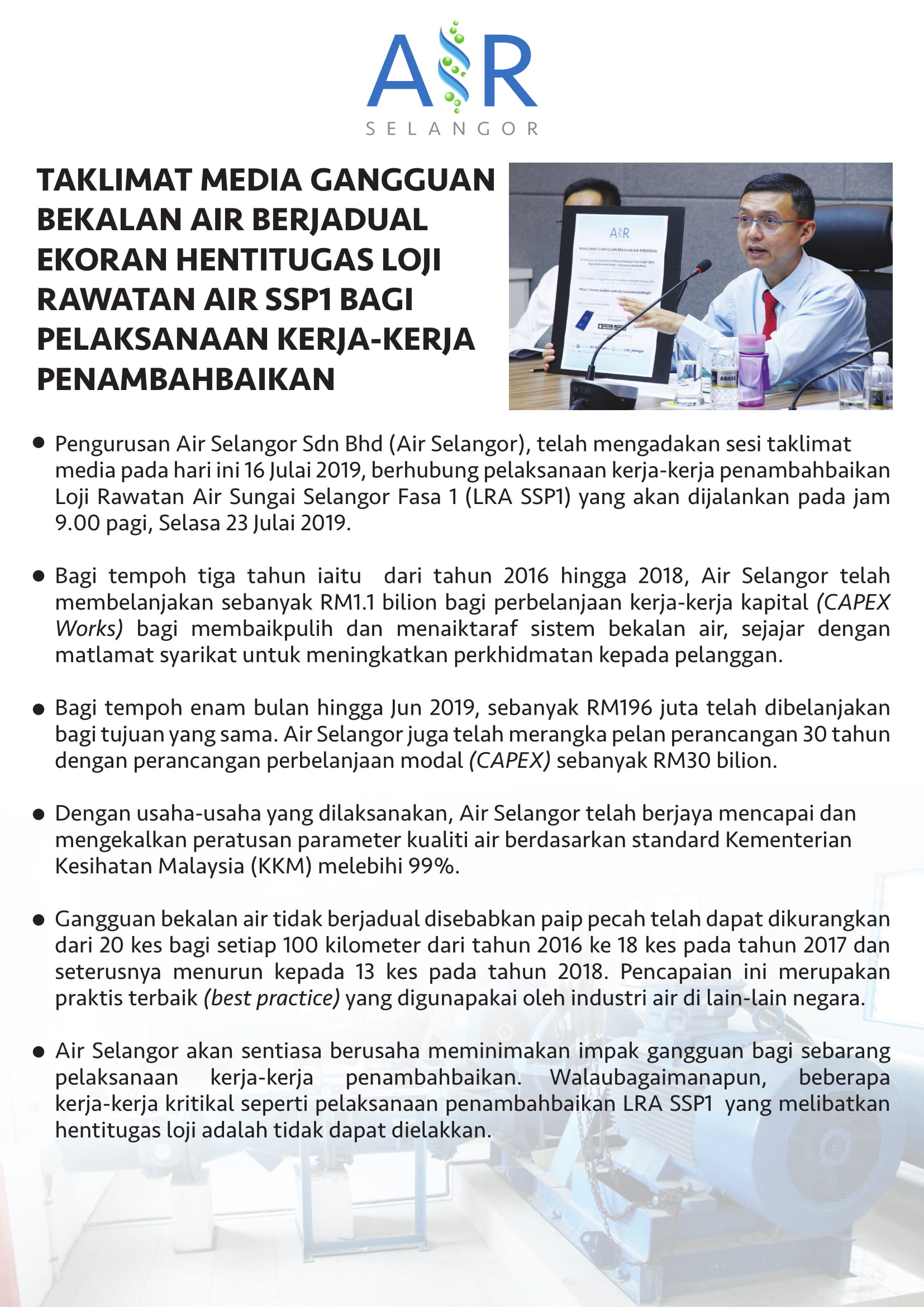 تويتر Air Selangor على تويتر Taklimat Media Gangguan Bekalan Air Berjadual Ekoran Hentitugas Loji Rawatan Air Ssp1 Bagi Pelaksanaan Kerja Kerja Penambahbaikan Airselangor Https T Co 32k83nucnx